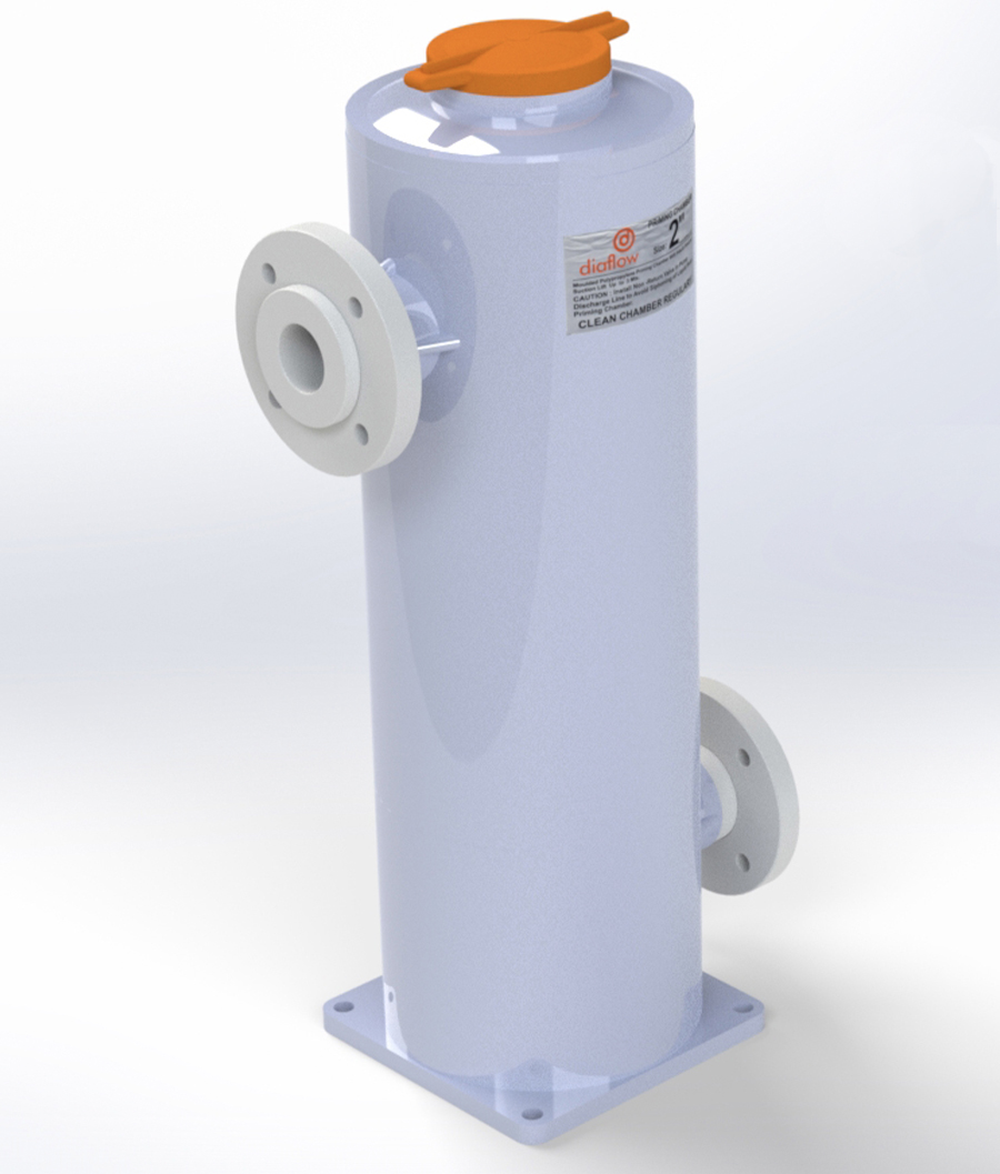 A priming chamber is a reservoir which maintains positive head on the pump. In case of suction lift applications, the Diaflow priming chamber generates enough vacuum so that the liquid rises and enters the chamber thus continuing to keep it full. At every start-up, the cycle continues thus eliminating the need to prime the pump. Above all, the Diaflow priming chamber retains a charge of liquid sufficient to prime the pump.