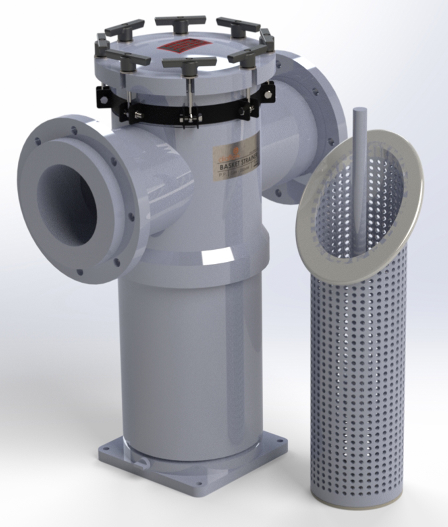Basket strainers are a device typically connected to a pumps suction, which is used to filter out solids or debris larger than the mesh contained within the strainer, which would otherwise damage the pump, internal parts or system.